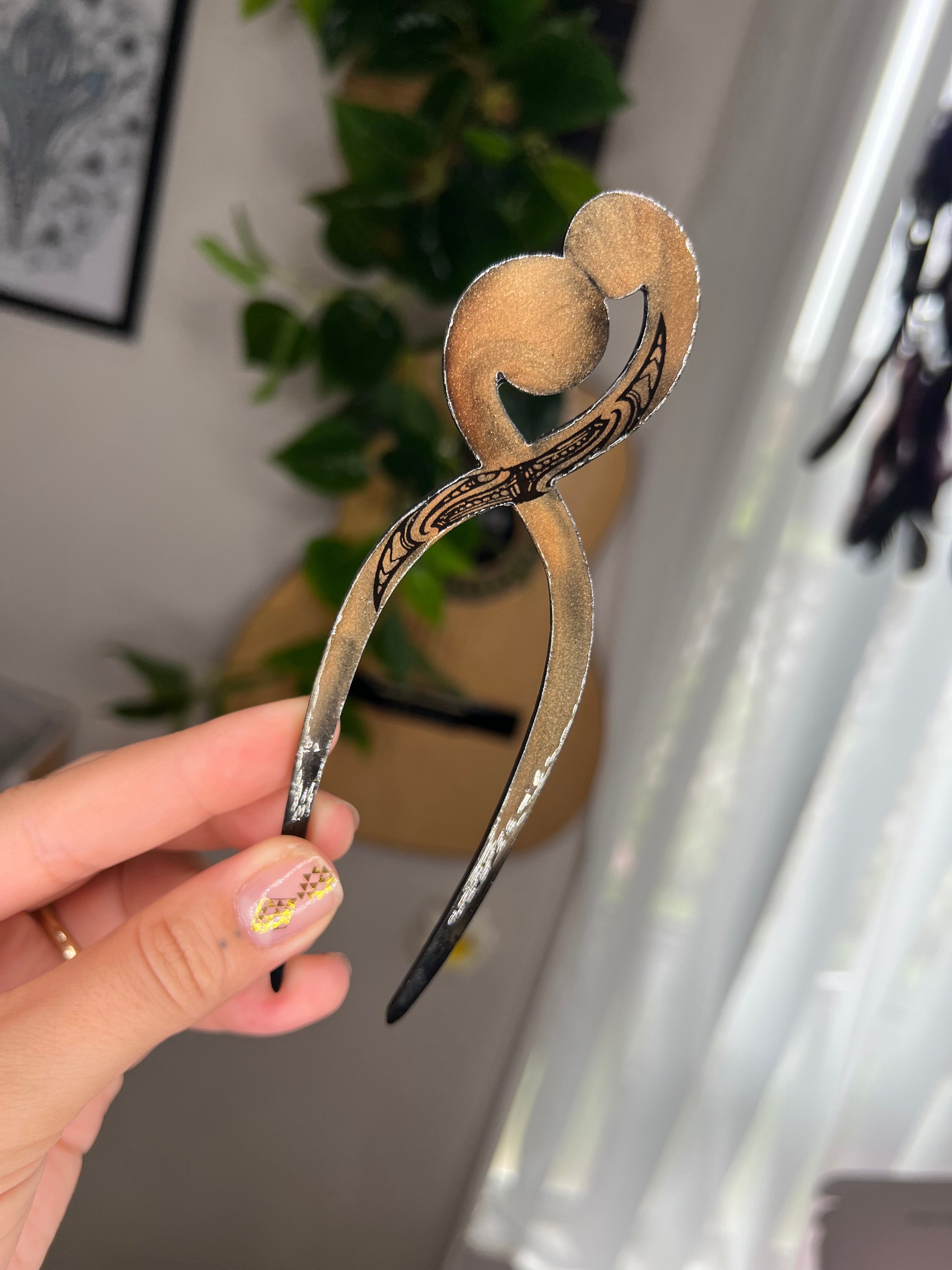 This taonga is handcrafted with care and is intended to be worn gently. Please ensure it is securely placed in the hair before wear to help prevent it from slipping or falling out. Avoid dropping or placing pressure on the piece when not in use, and store safely to help preserve its finish and longevity.