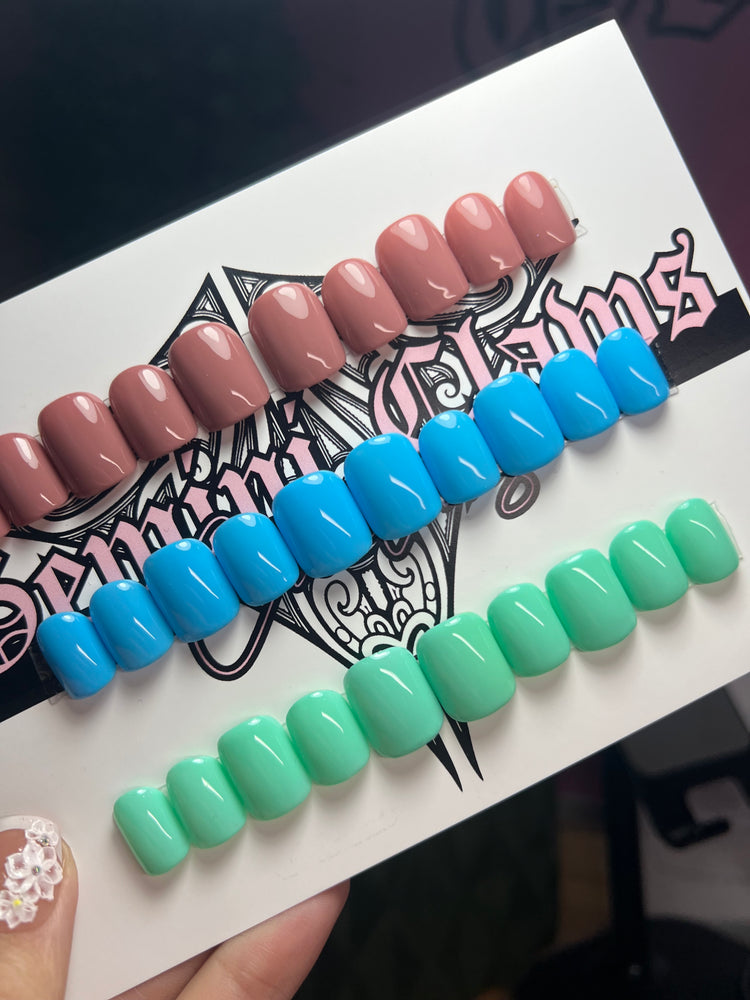 This listing allows you to choose one solid colour from the colour charts shown in the product images. Each set is handmade to order as reusable gel press-on nails, crafted with care in Aotearoa.
